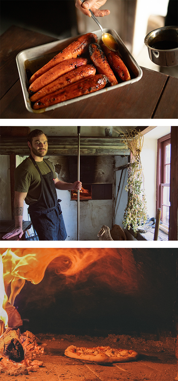 Some recent dishes from Chef Chris’s menus, cooked in the squirrel tail oven (dating back to the 1760s), include: