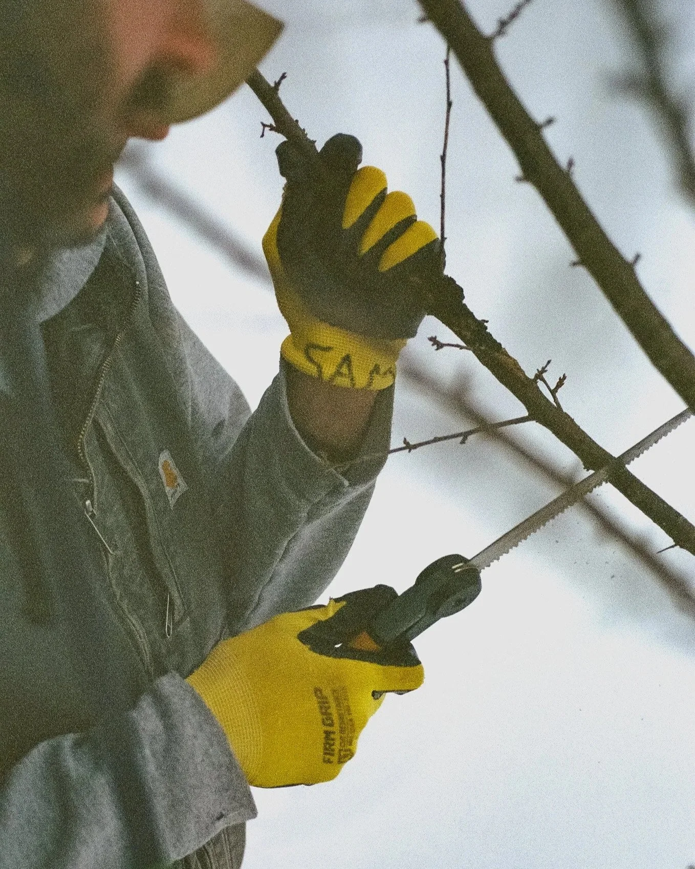Late winter (after the deepest cold has passed but before bud break) is the primary pruning window for many orchard trees. Working while the trees are still dormant allows us to remove what’s damaged or diseased and shape their structure for the season ahead. Each cut influences how the tree will grow. As our arborist, Sam G., prunes the young plum trees in the Community Garden, he reminds us that growth will happen regardless; pruning is about directing that growth wisely.